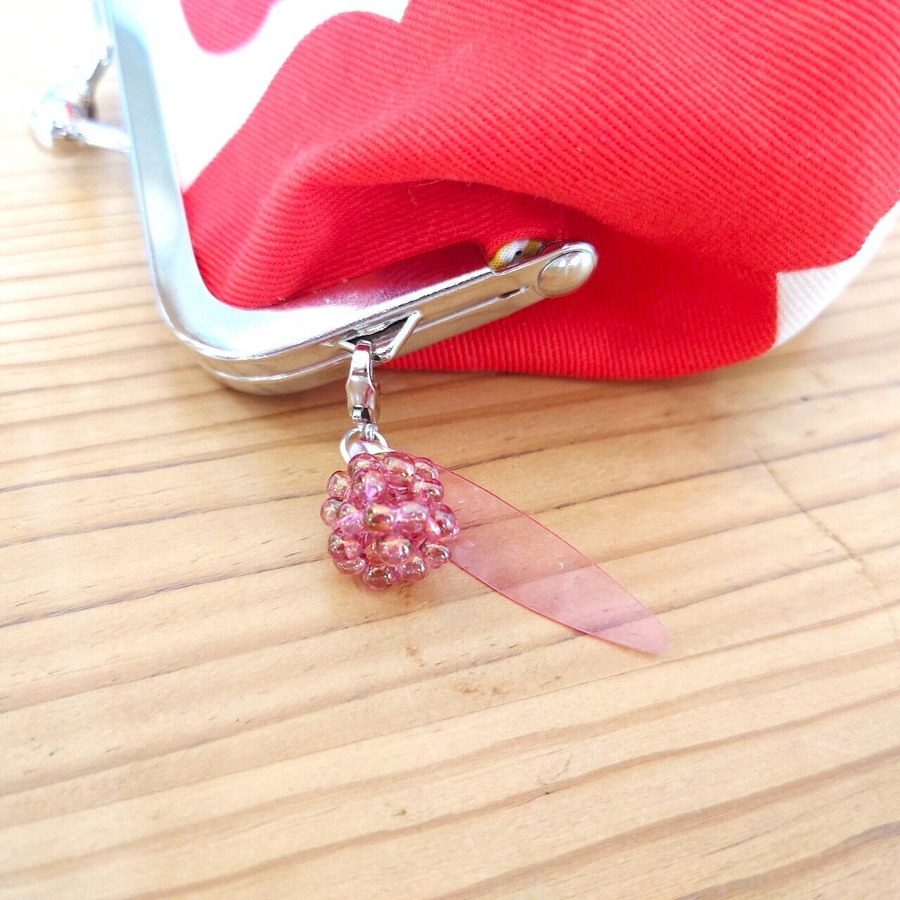 ガラスビーズで作られたコロンと丸い球体のチャームつき。