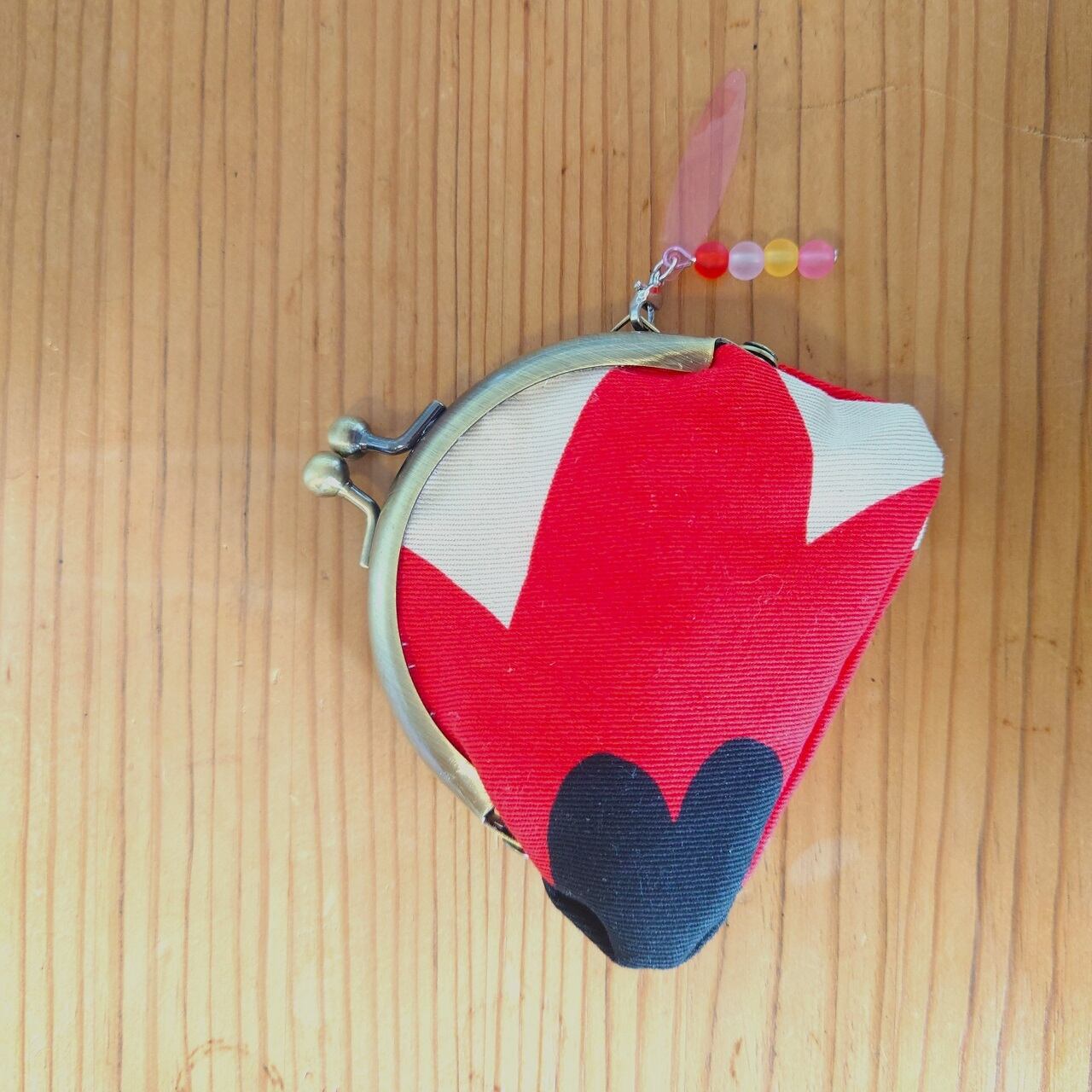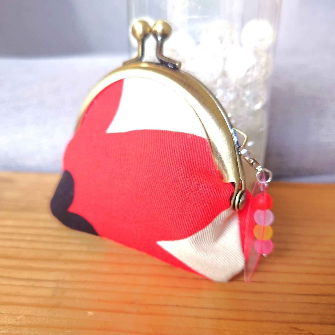 大きな赤い花のモチーフの、がま口のお財布。