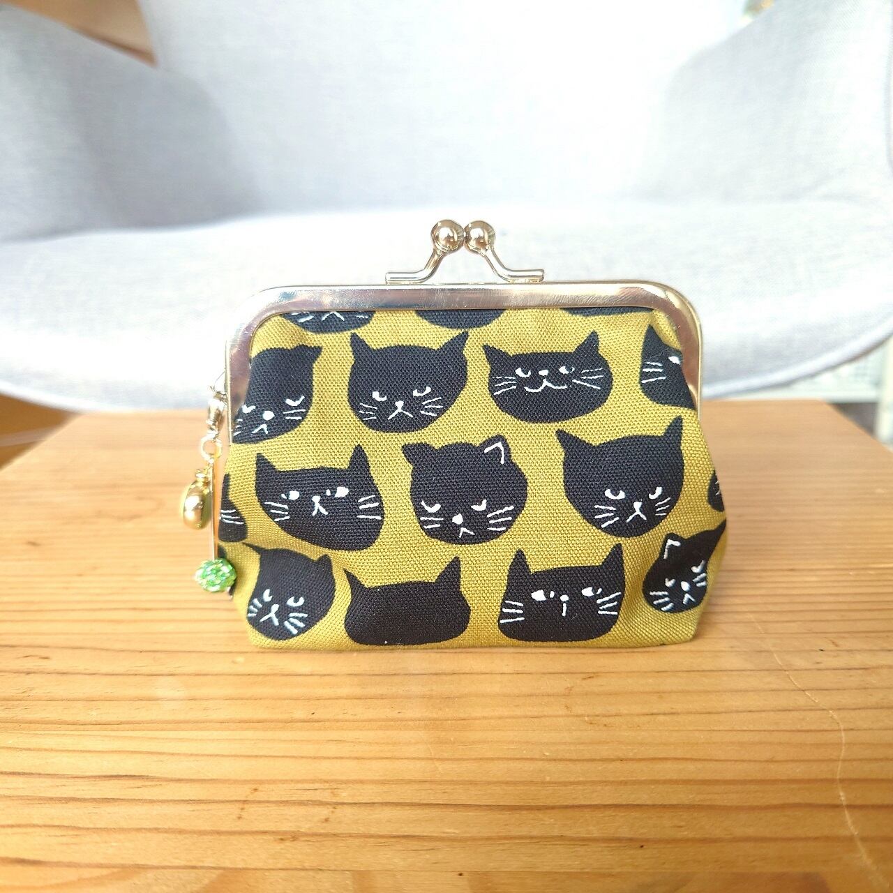 様々な表情が可愛い黒猫のがま口ポーチ。