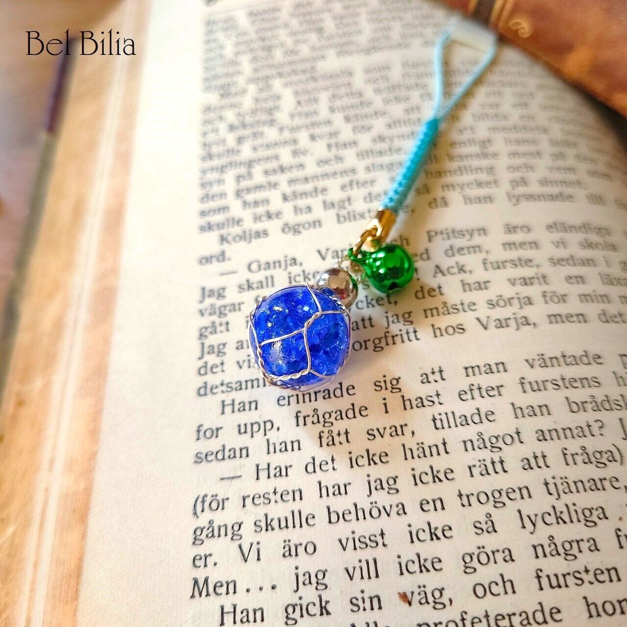 クラッシュ加工を施したビー玉で作られた可愛らしいお守り。