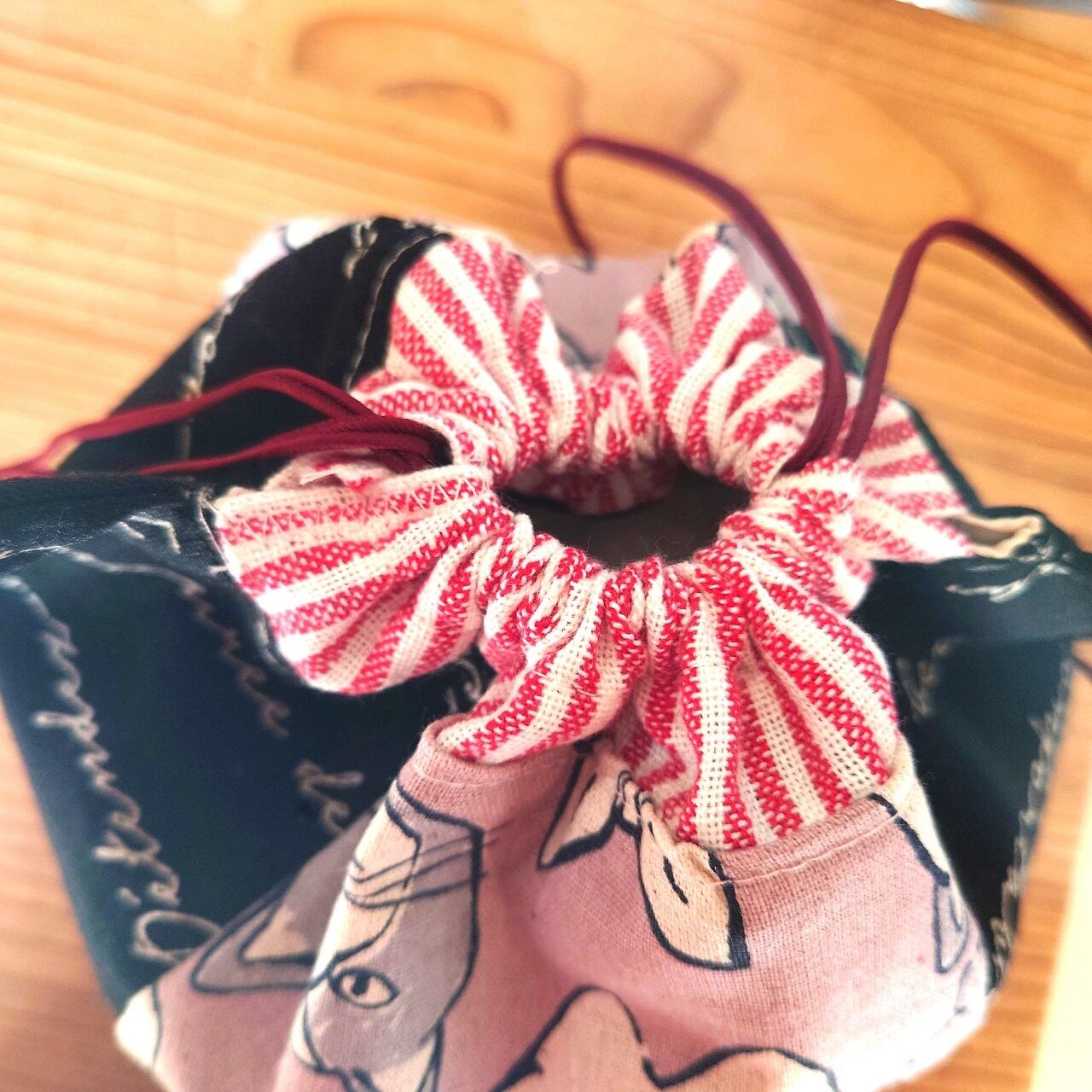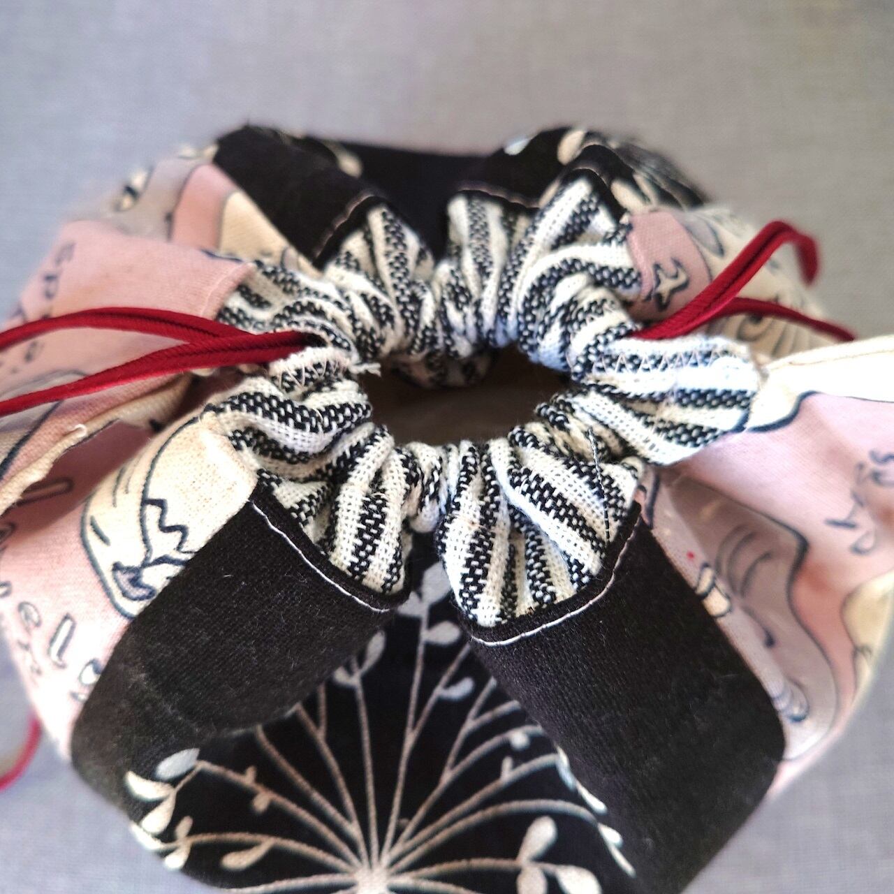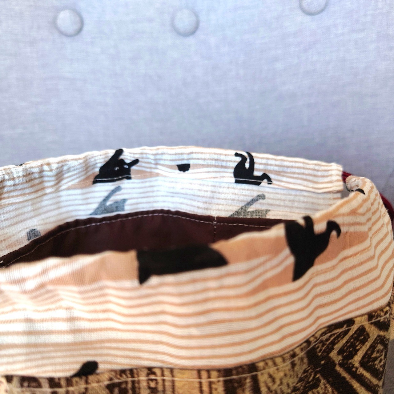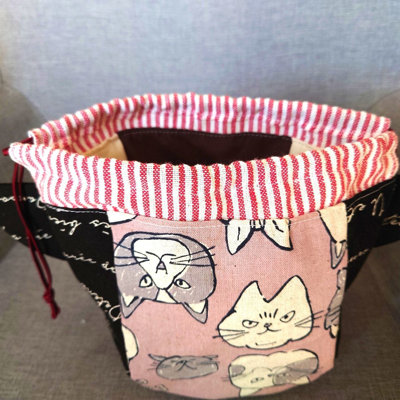 紐をぎゅっと絞ると、耳がピン立った猫の形になります。