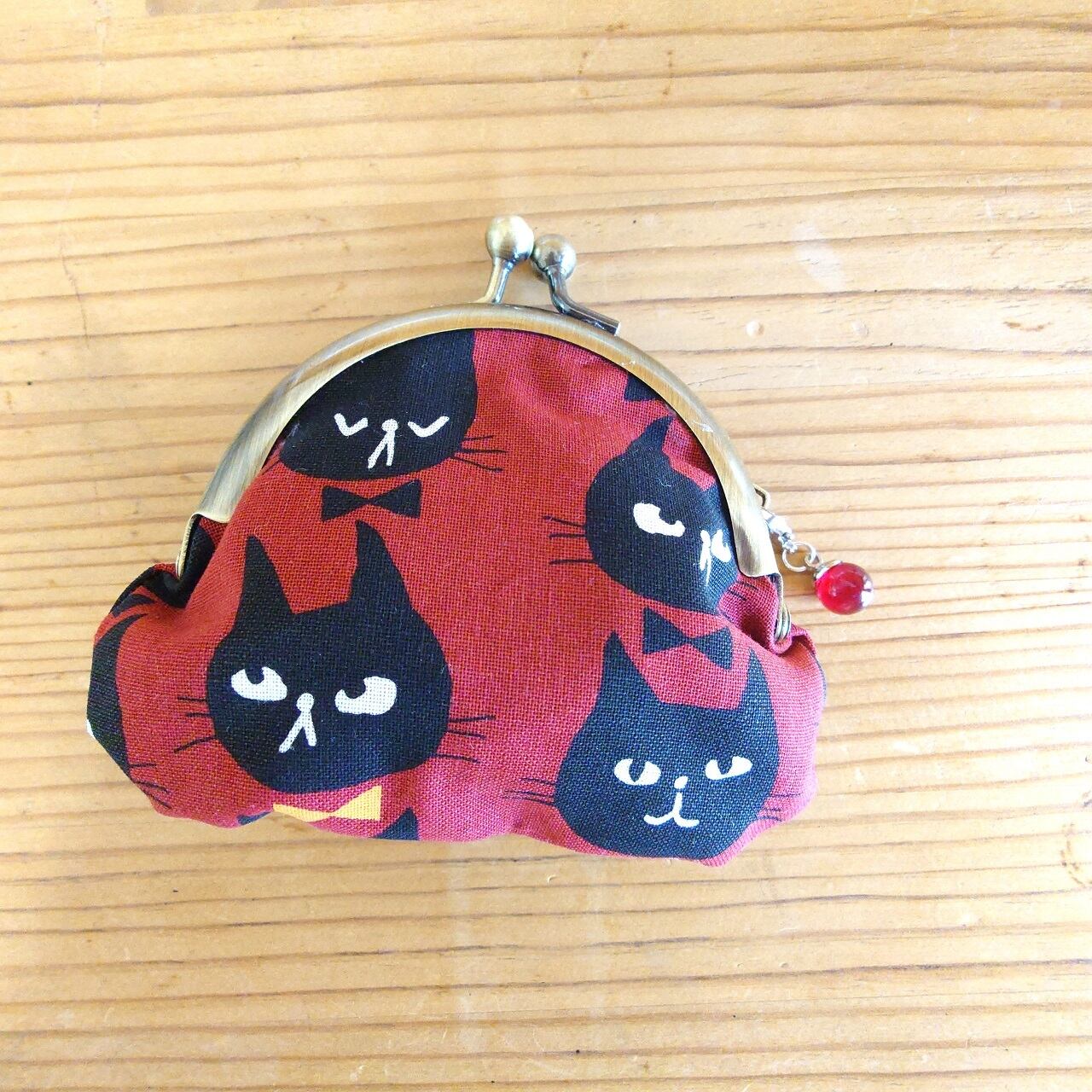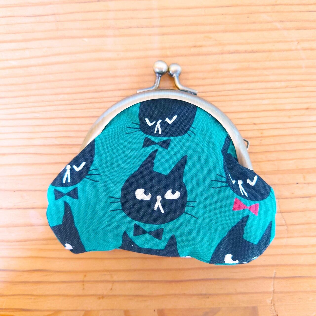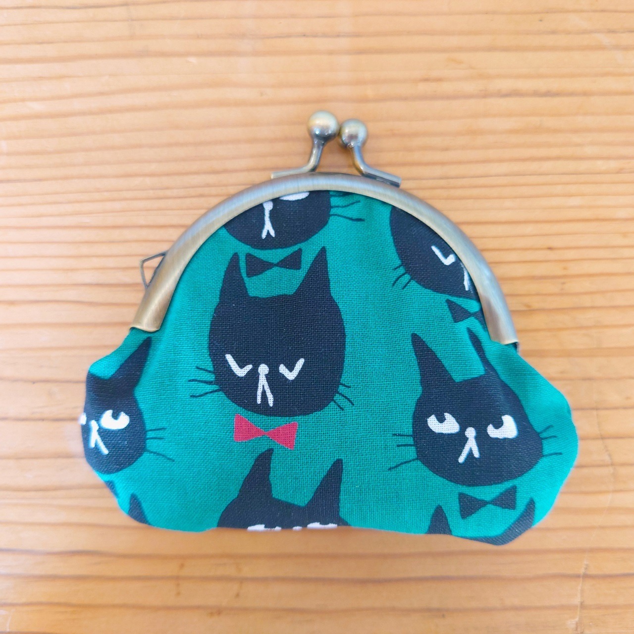 黒猫ちゃん柄が可愛いがま口のお財布。