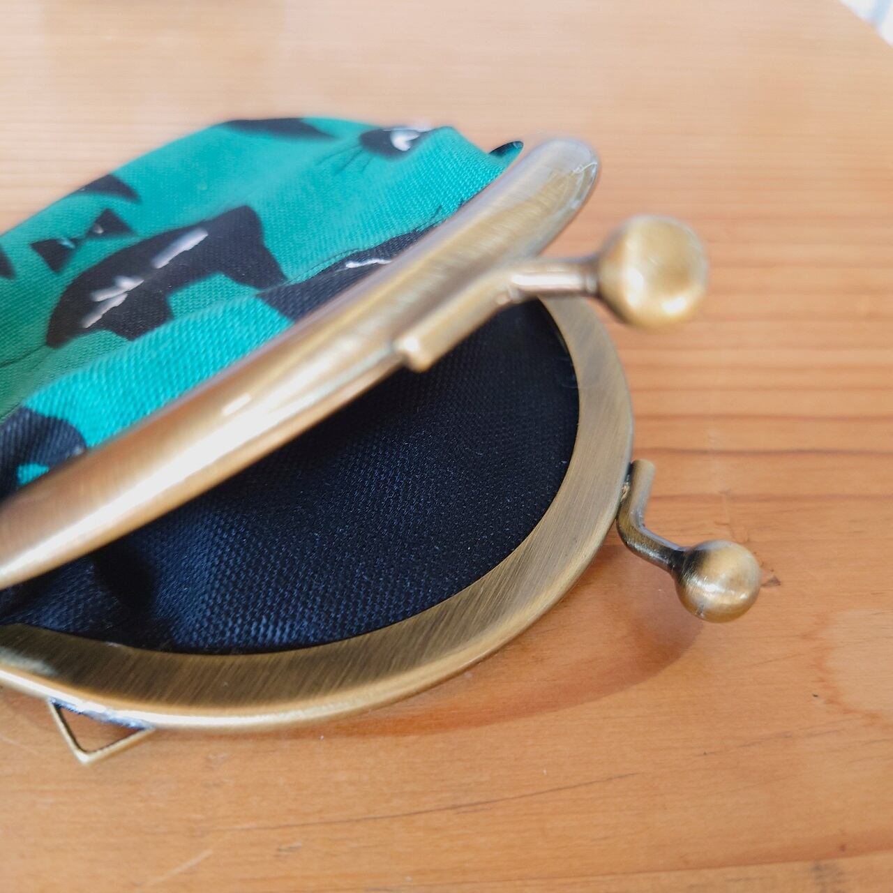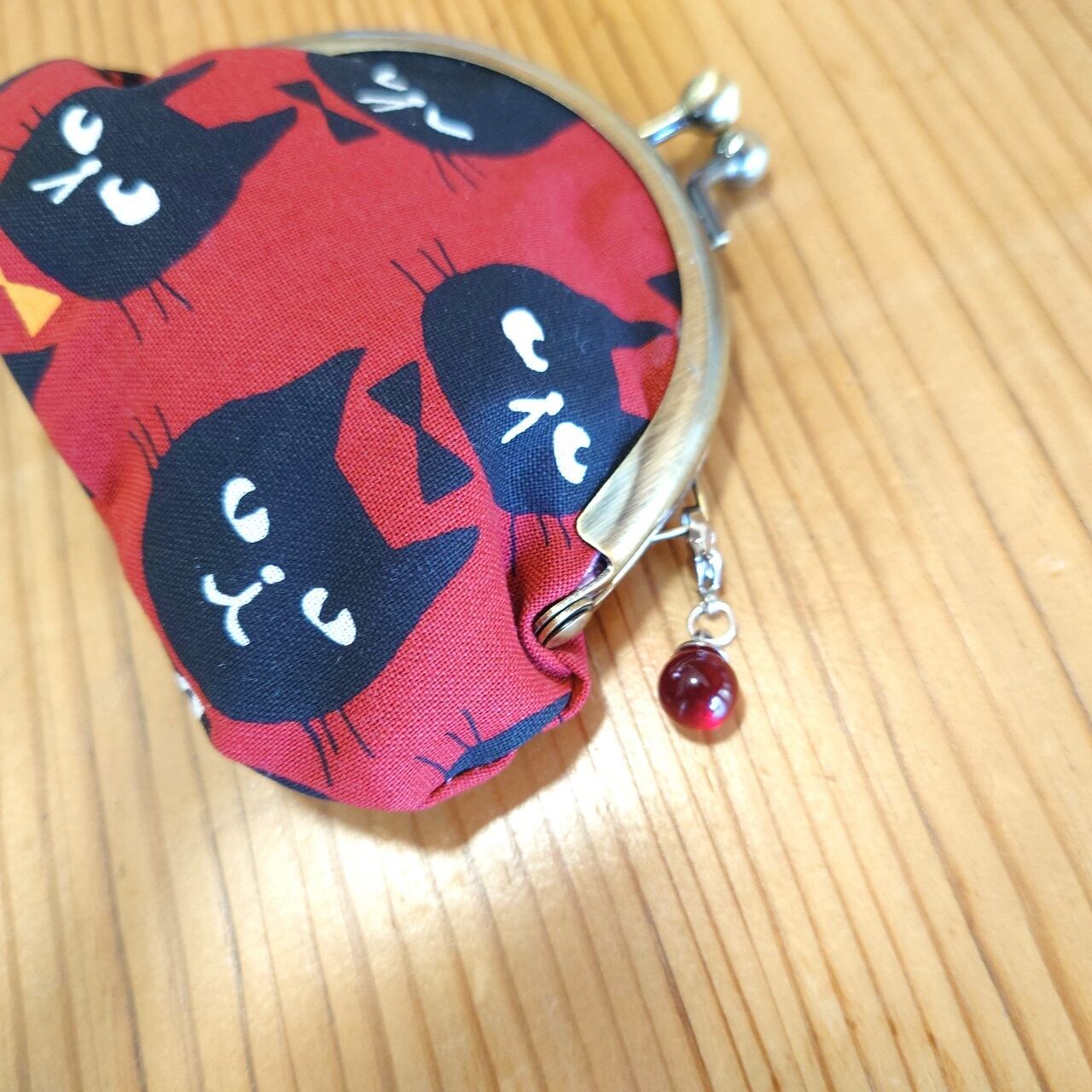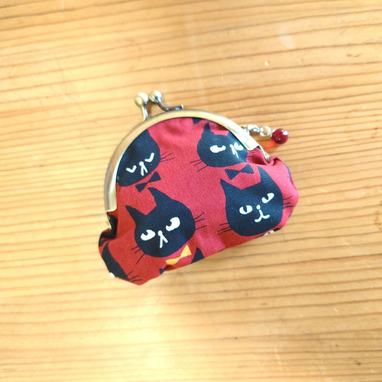 黒猫ちゃん柄が可愛いがま口のお財布。